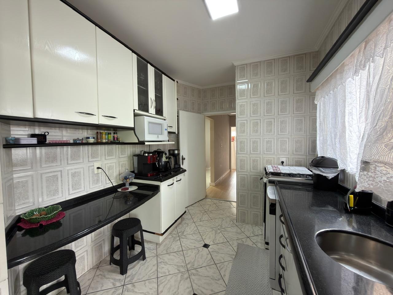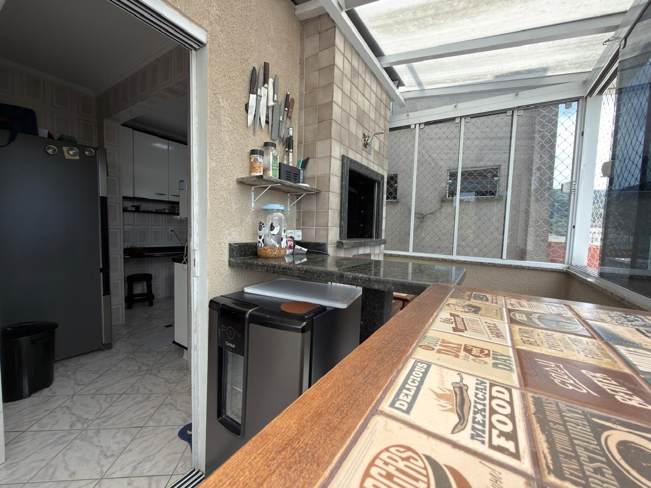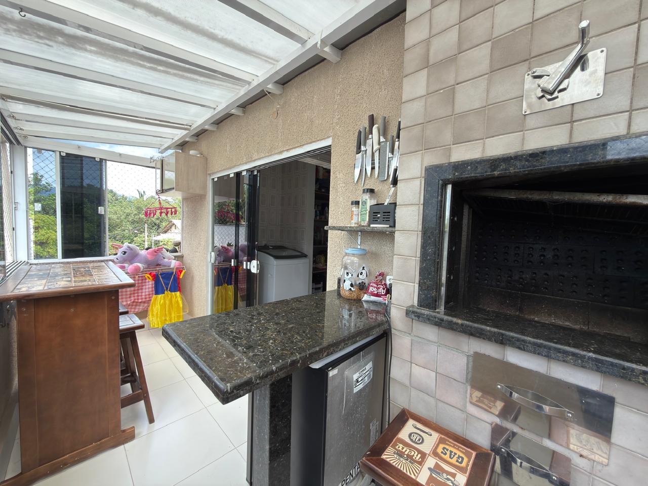 Possui 1 suíte + 2 quartos, sala de estar com sacada, sala de jantar decorada, cozinha com móveis planejados, área de serviço e sacada com churrasqueira.