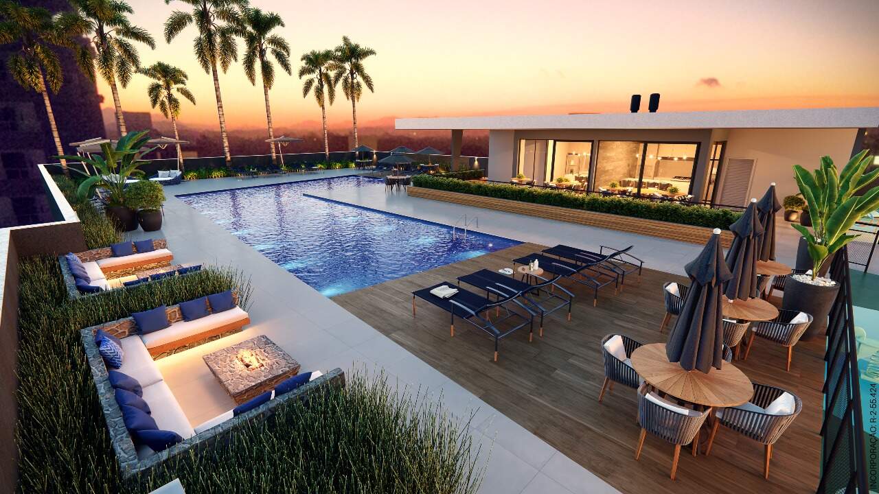 com churrasqueiras, piscina, fire pit, playground e espaço pet.
