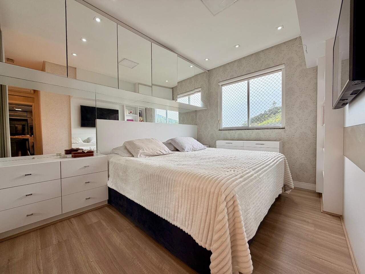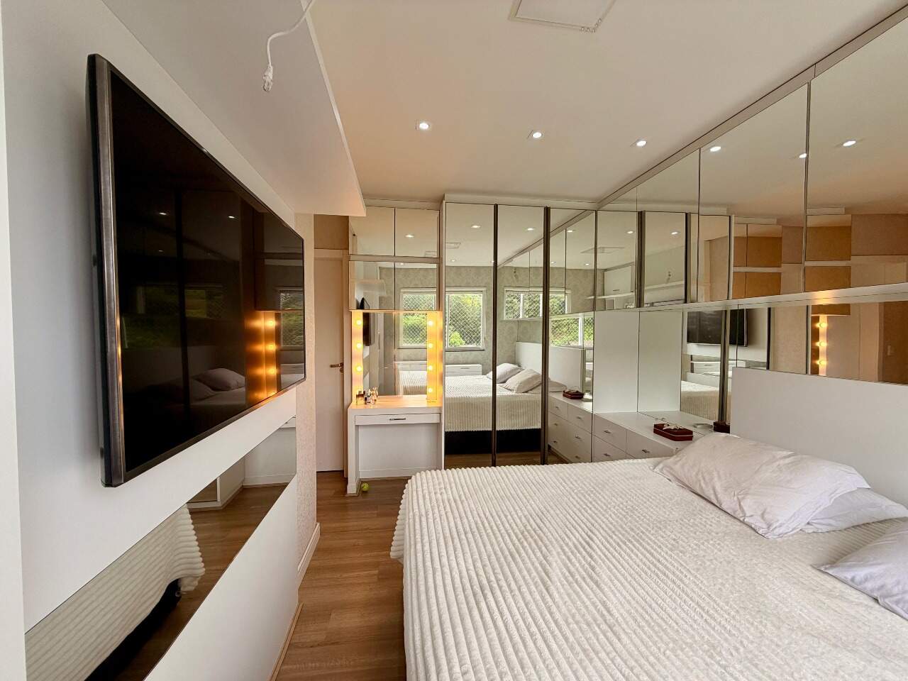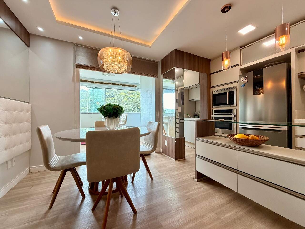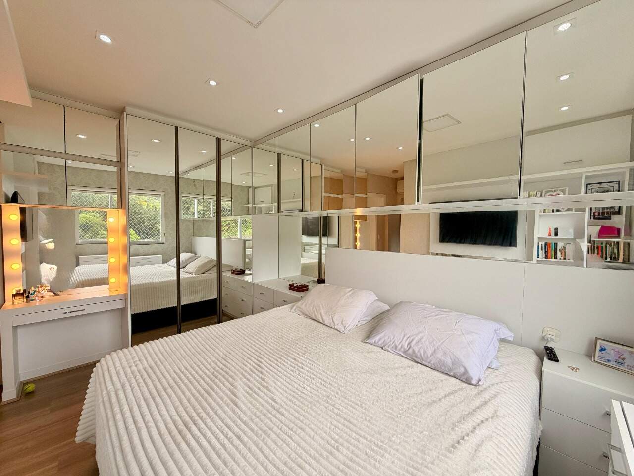 Possui 3 quartos, sendo 1 suíte. Atualmente, o segundo quarto sendo usado como closet e home office da suíte, 2 banheiros, sala, varanda gourmet com linda vista, área de serviço, closet, despensa, escritório, mobiliado e armários planejados.