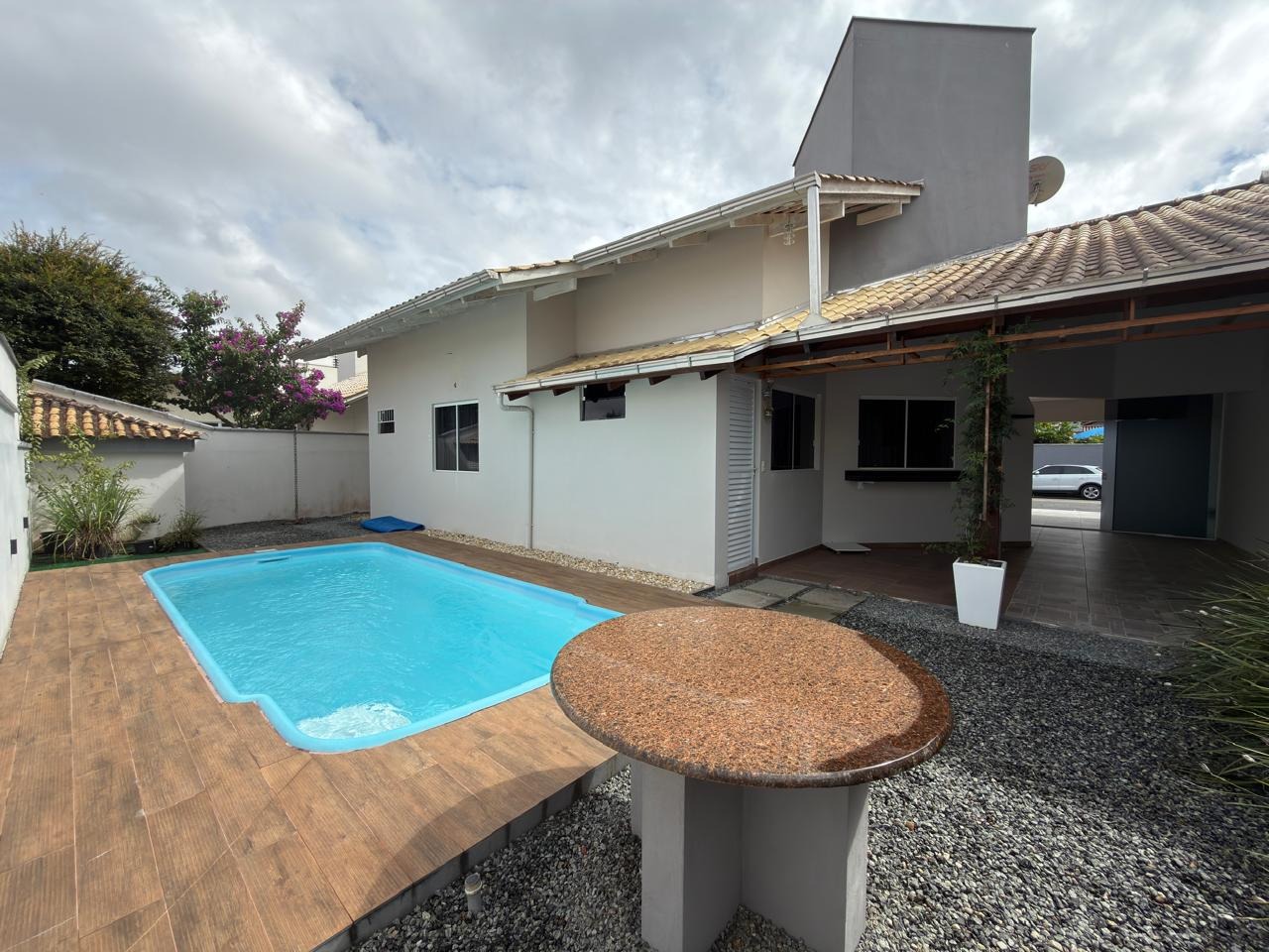 Possui sistema de placa solar para aquecimento da psicina.
