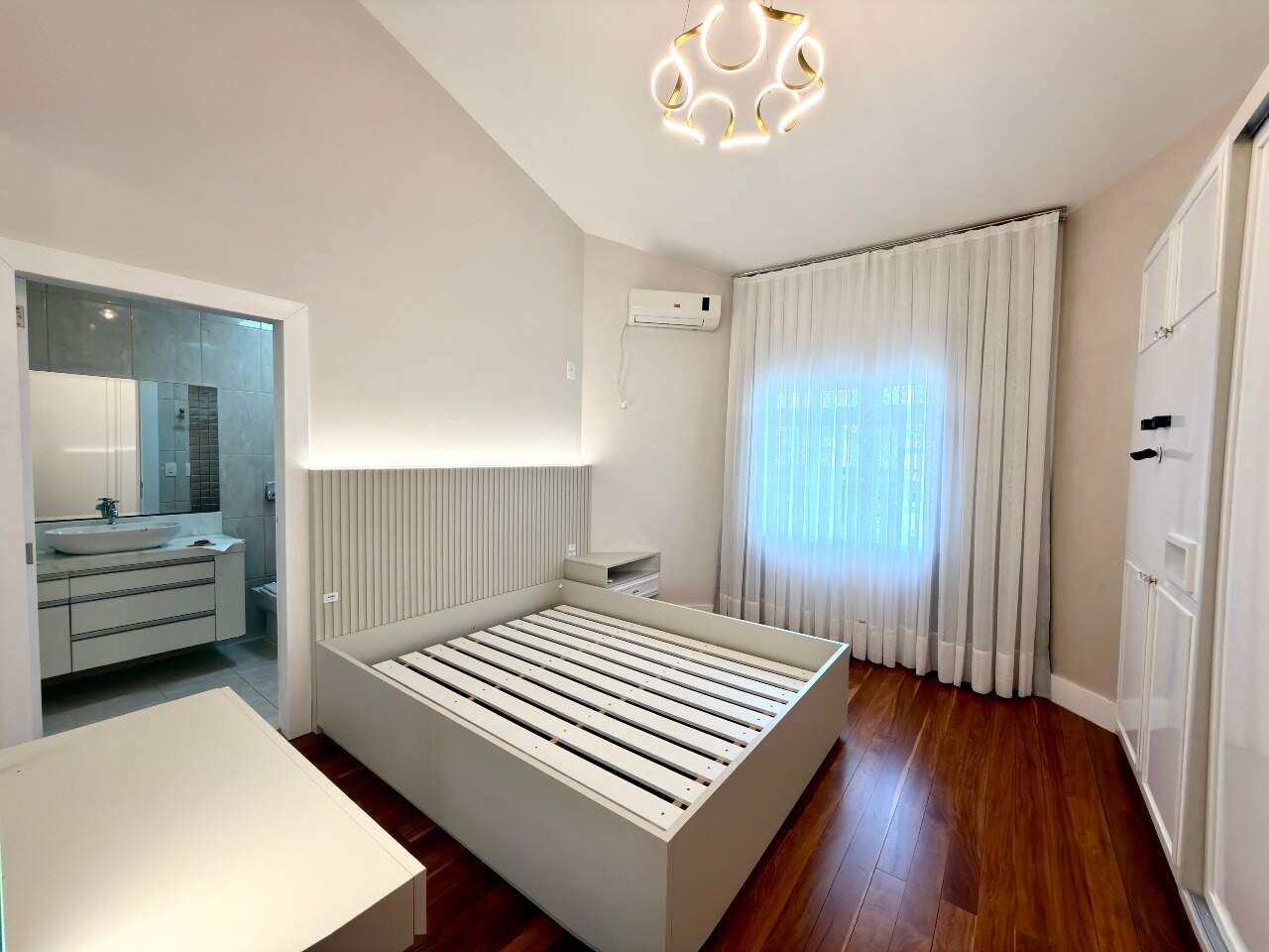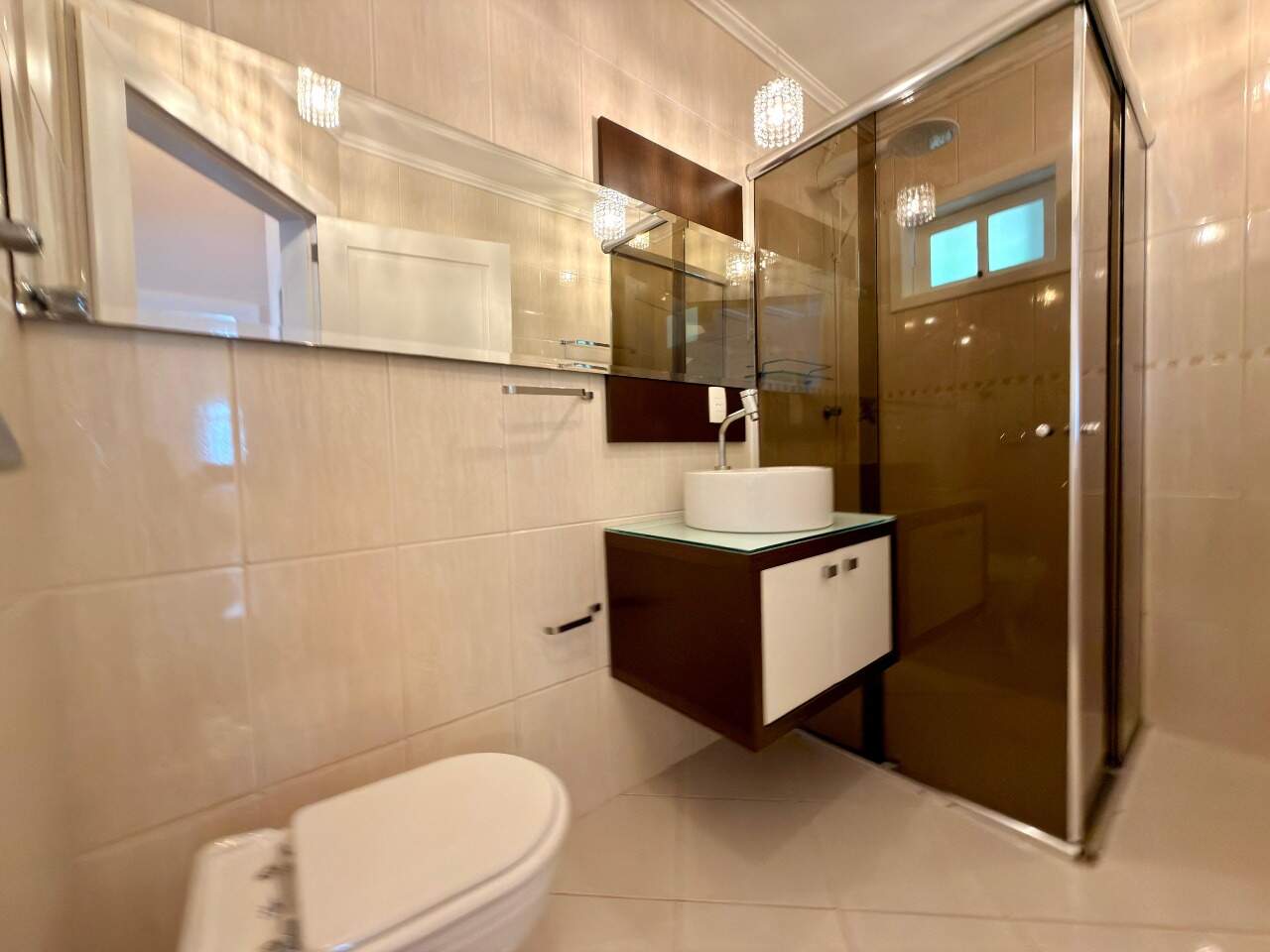 Planta com 03 quartos, sendo 02 suítes, sala de estar e jantar com pé direito mais alto, cozinha, linda área de festas com vista desimpedida para o bairro, banheiro social e lavabo.