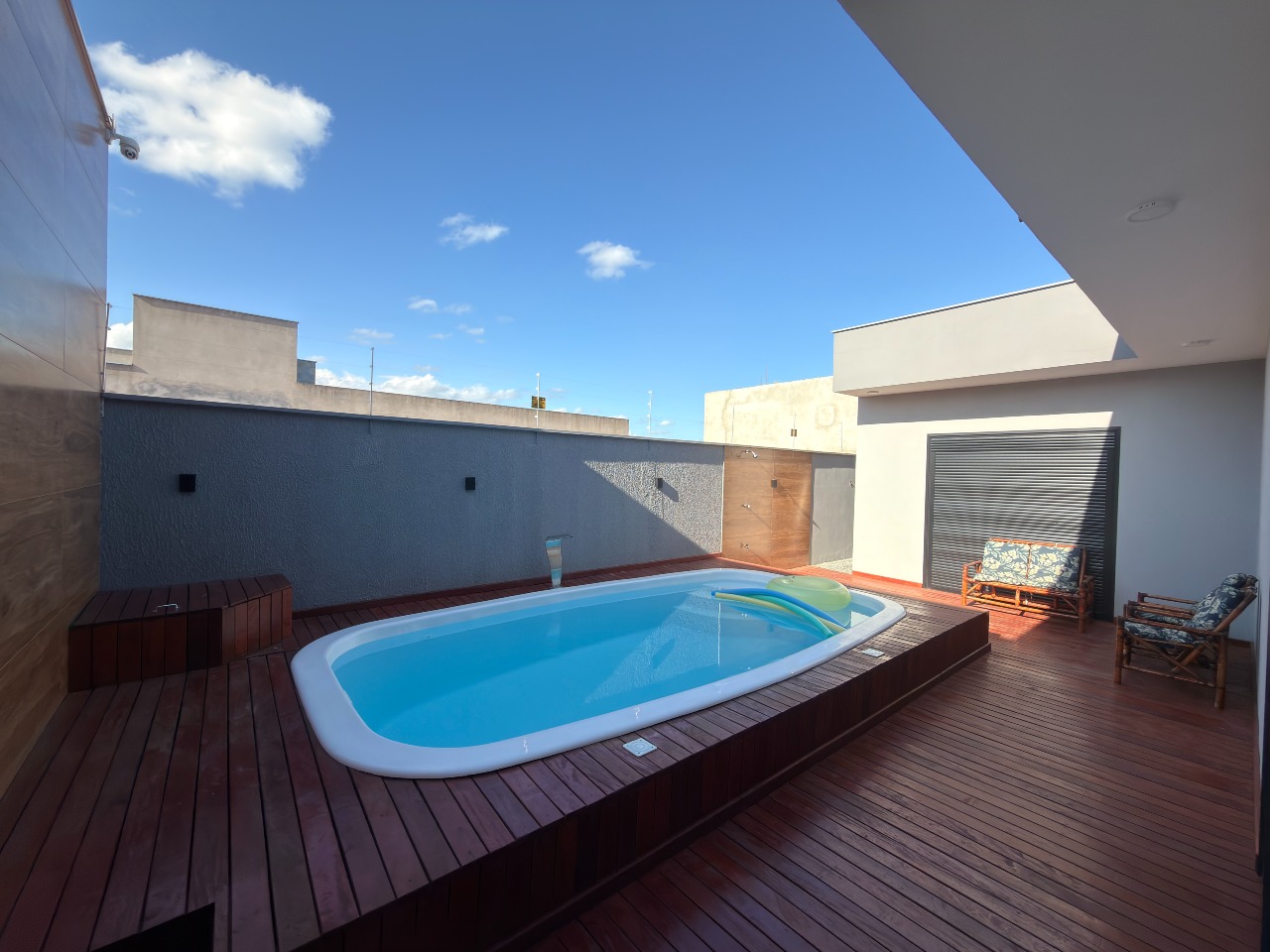 Possui planta térrea em formato de “U”, com 3 dormitórios, sendo 1 suíte com closet e acesso direto, além de uma linda vista para a área de lazer.