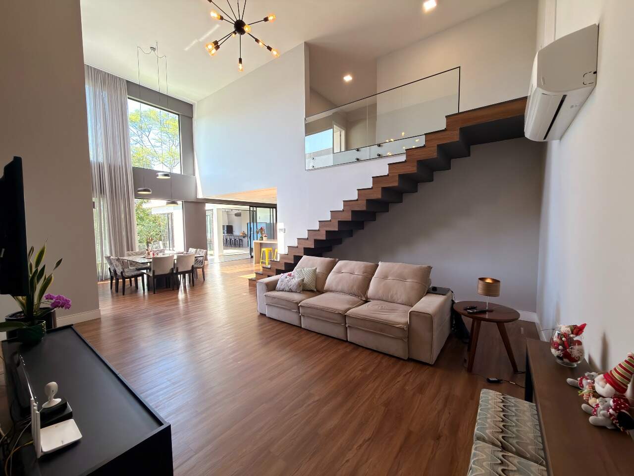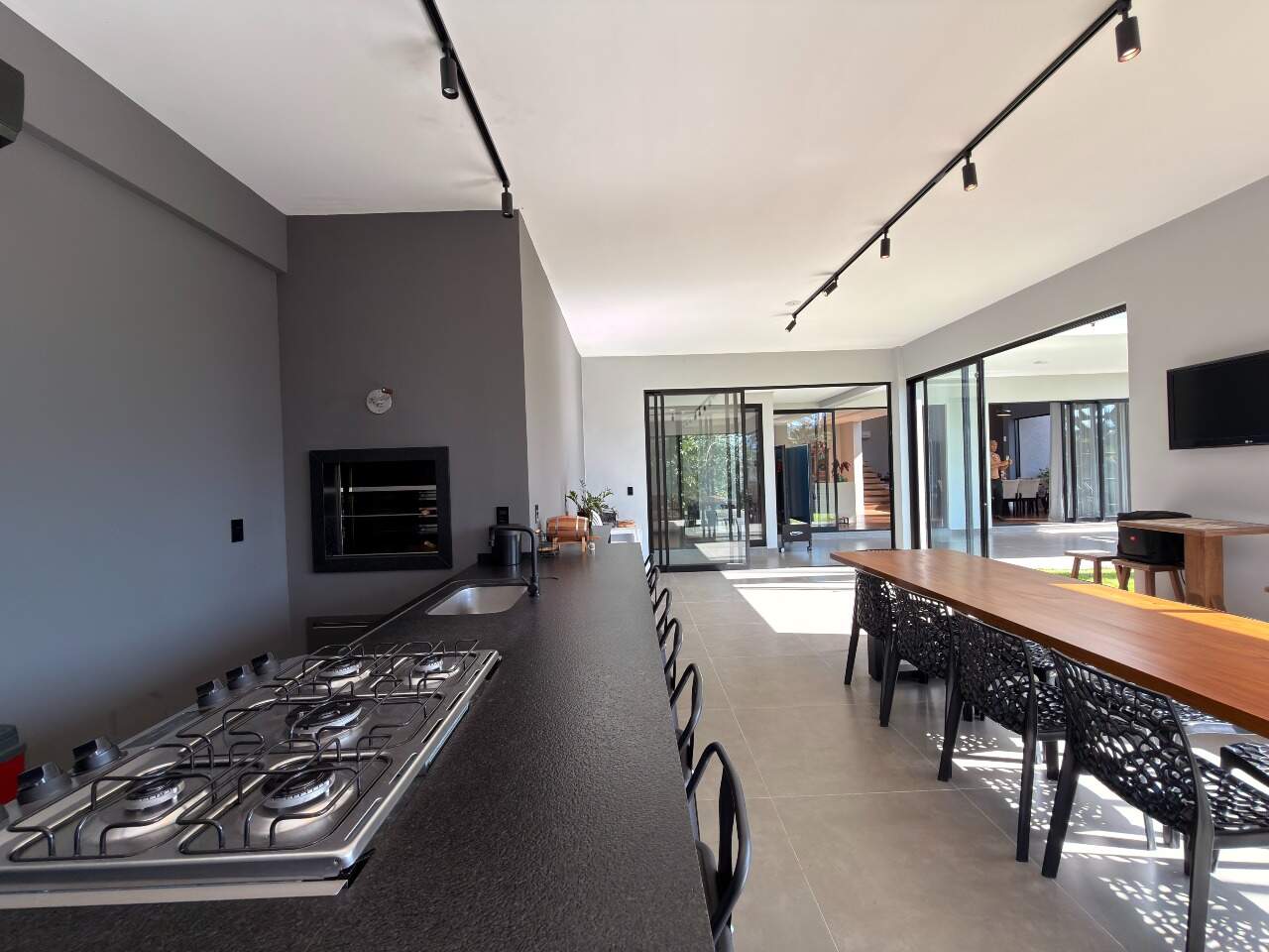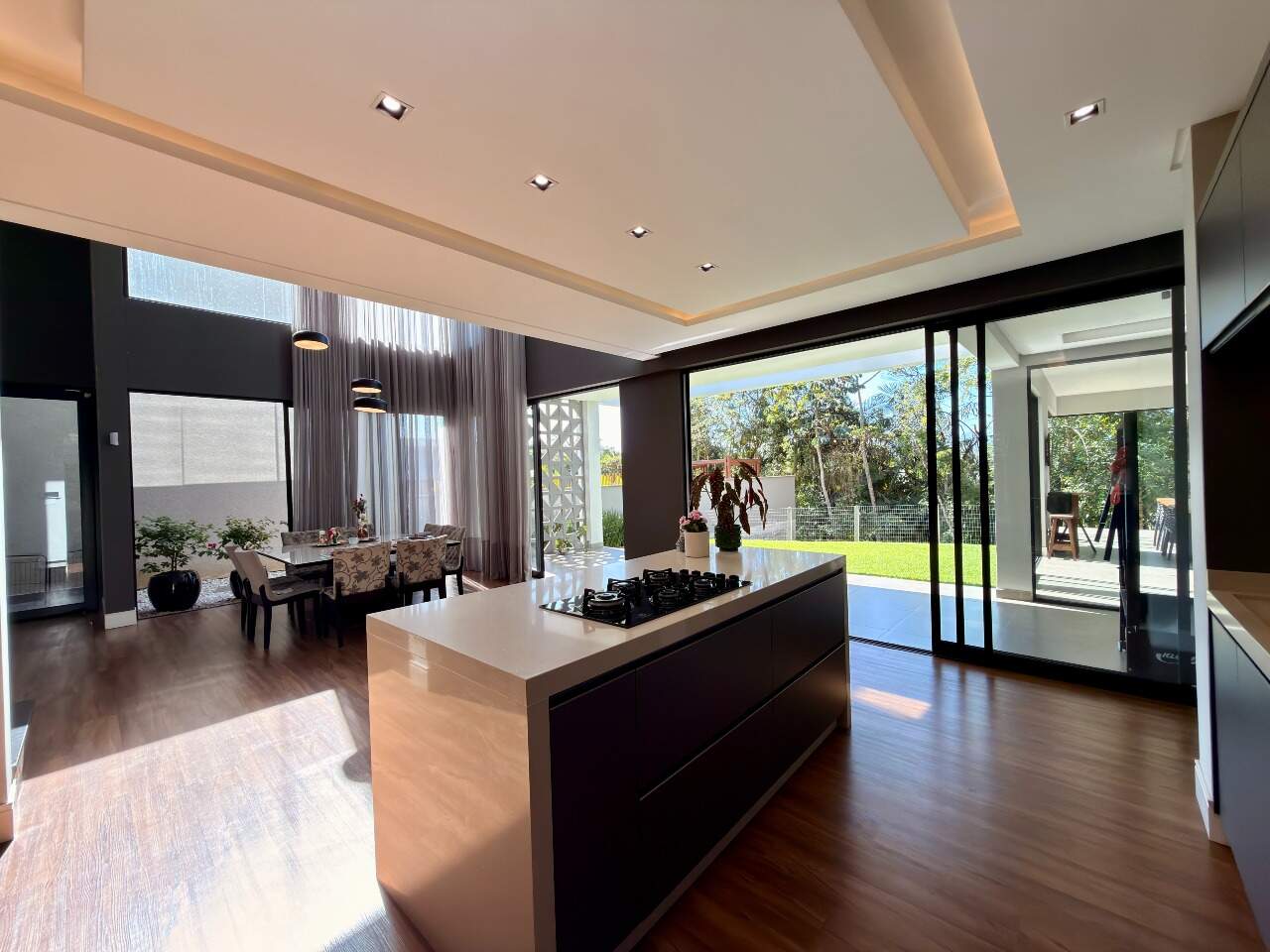 Área interna de 367,84 m² e terreno de 561,28 m², com acabamento em porcelanato/vinílico, ar-condicionado, closet, escritório e espaço gourmet com vista permanente.