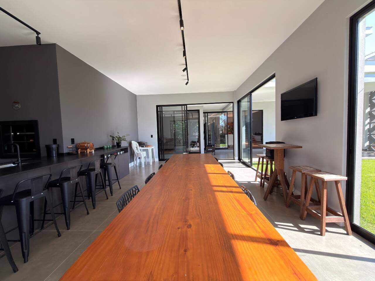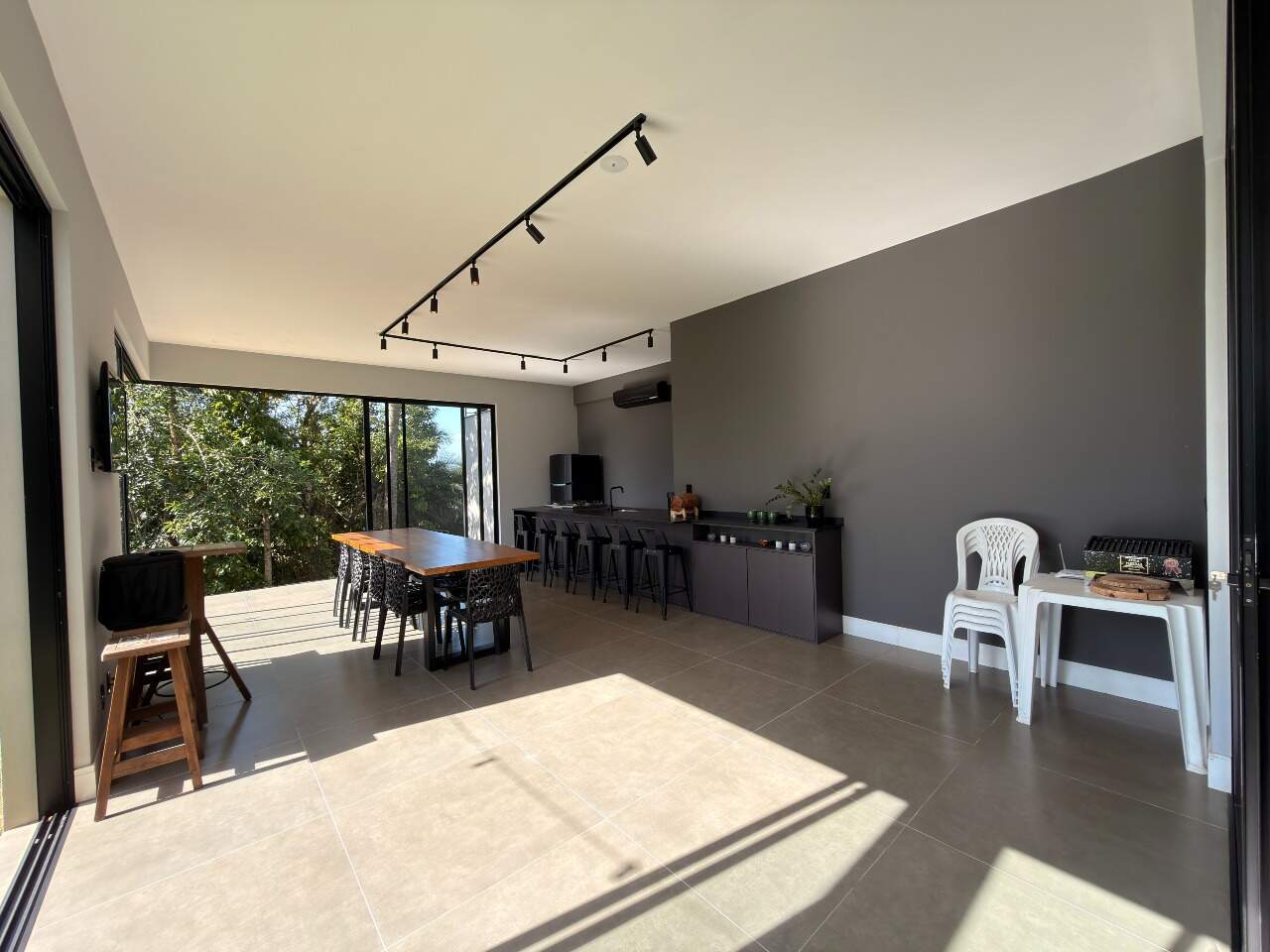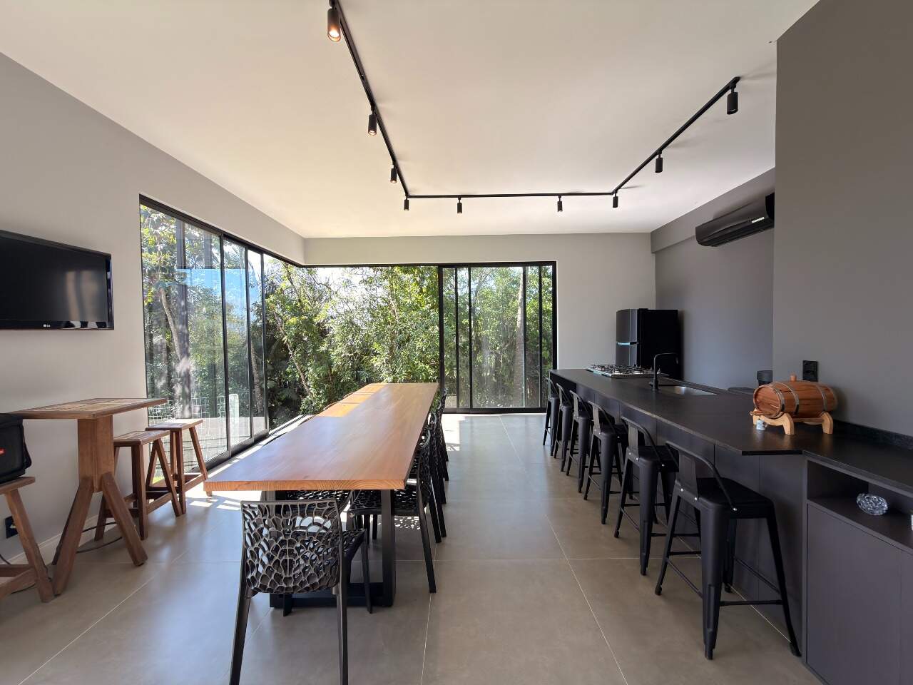 Área interna de 367,84 m² e terreno de 561,28 m², com acabamento em porcelanato/vinílico, ar-condicionado, closet, escritório e espaço gourmet com vista permanente.