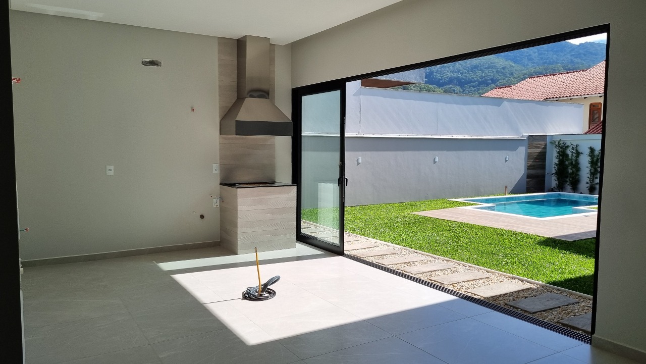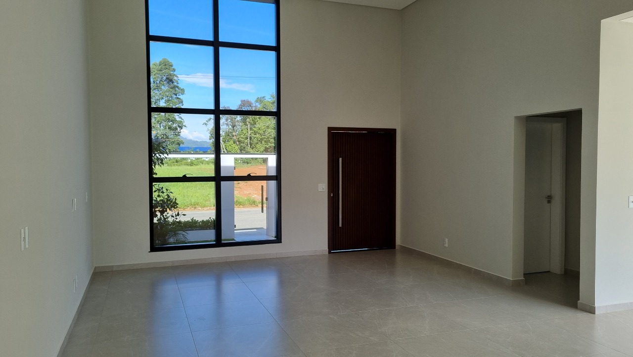 Casa alto padrão, elegante e contemporânea, com projeto arquitetônico de linhas limpas e grandes de vidro, que valorizam a iluminação natural e a integração dos ambientes.