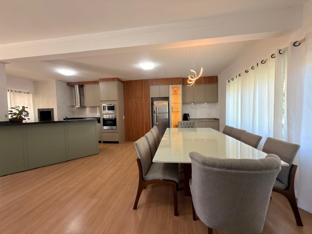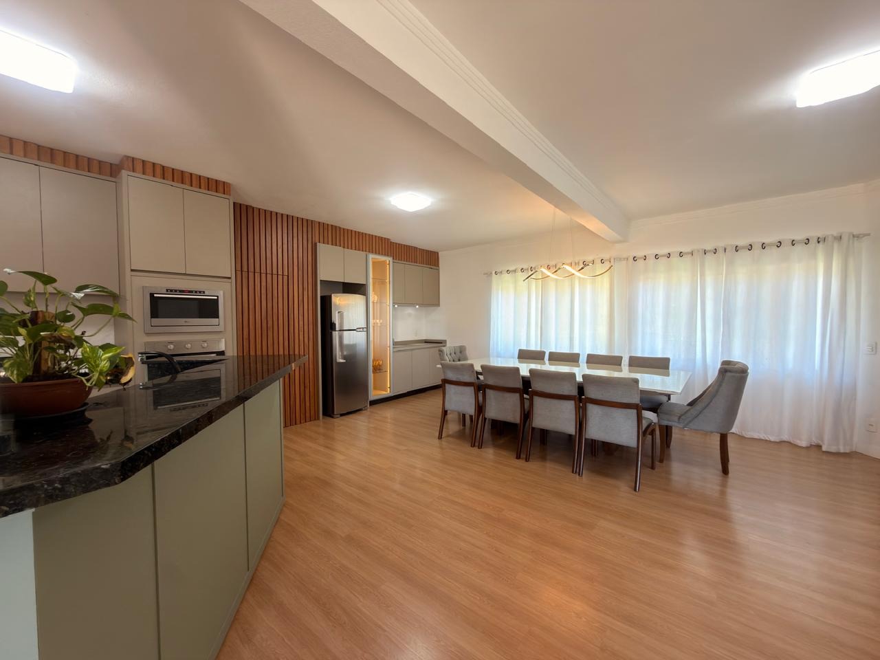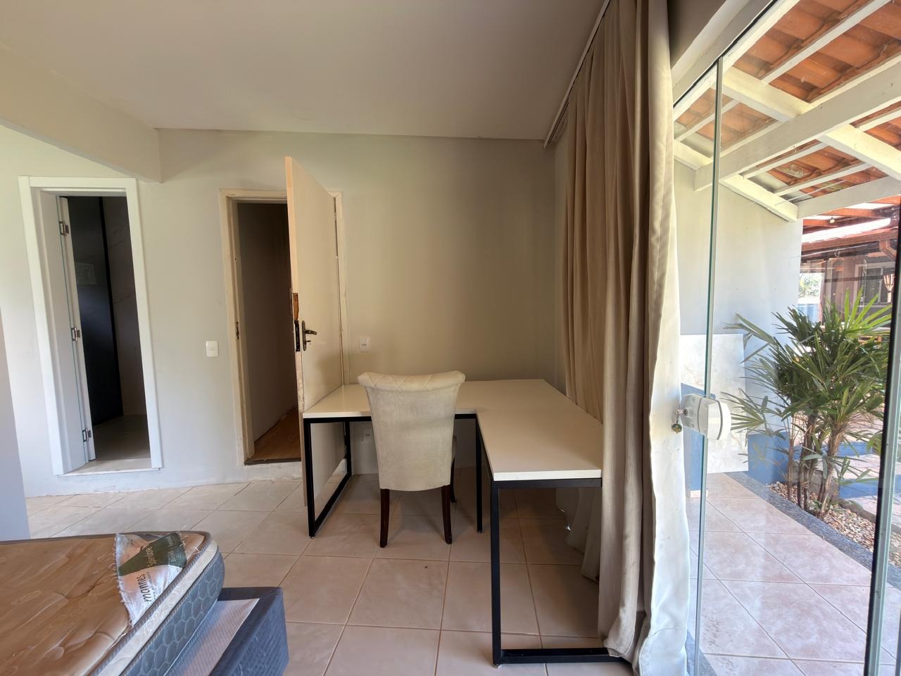 A área construída conta com sala de estar, jantar, cozinha (com churrasqueira), 04 quartos, sendo 01 suíte com closet ( um dos quartos tem porta janela para a área de lazer), lavanderia.