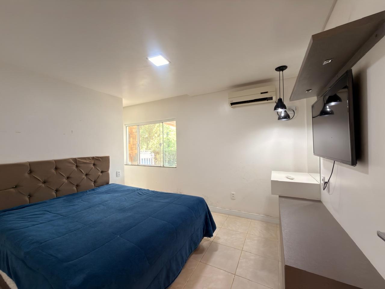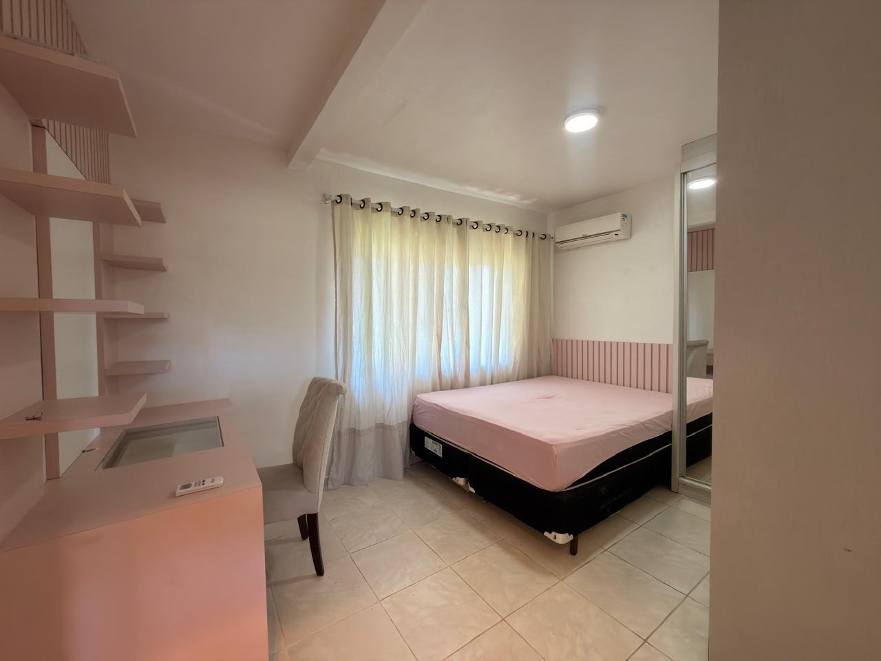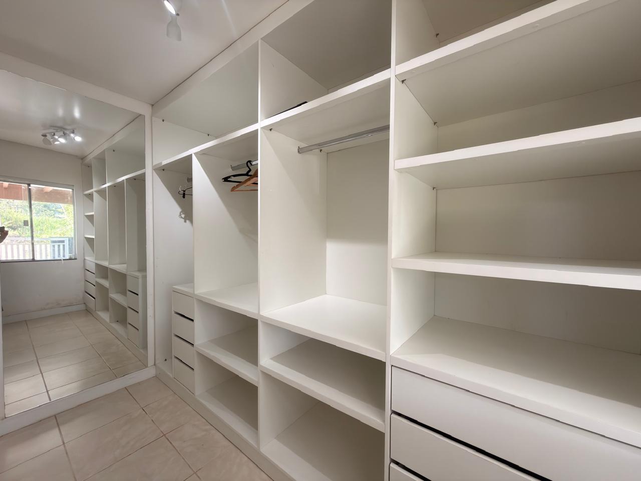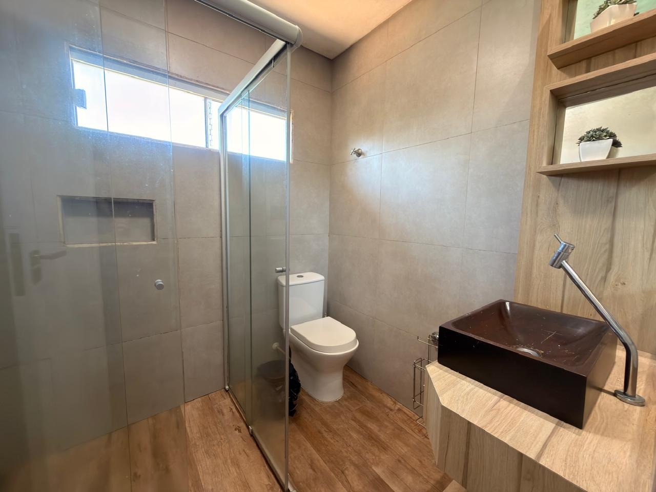 A área construída conta com sala de estar, jantar, cozinha (com churrasqueira), 04 quartos, sendo 01 suíte com closet ( um dos quartos tem porta janela para a área de lazer), lavanderia.