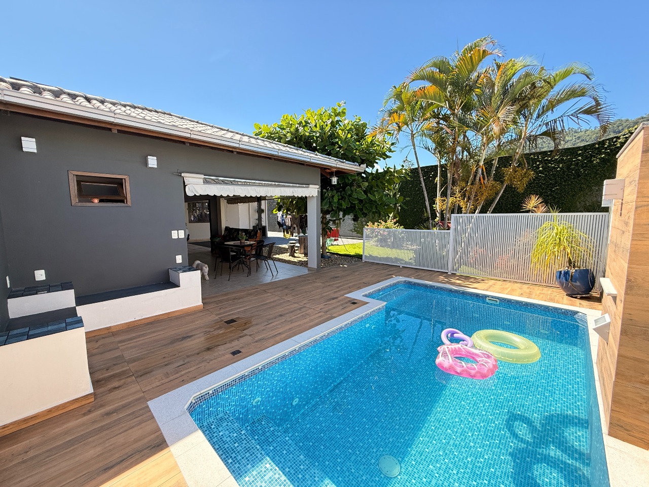 Casa térrea residencial em Jaraguá do Sul, no Bairro Jaraguá Esquerdo, com 3 quartos (1 suíte), 2 banheiros e 2 vagas. Área interna de 100,98 m² em terreno de 415,45 m². Imóvel mobiliado e equipado: ar condicionado, área de serviço, despensa, armários (quarto, cozinha e banheiro), box, interfone, água individual e gás canalizado. Destaques de lazer: piscina, churrasqueira, jardim, quintal e gramado. Localização estratégica, ideal para famílias que buscam conforto e qualidade de vida. Valor de aluguel: R$ 6.000,00.