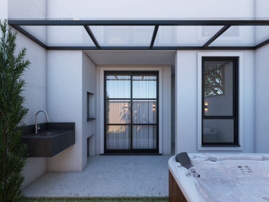 Geminado residencial com 110,78 m² de área interna e 117,90 m² de área externa, posição de frente. Possui 3 quartos (1 suíte), 2 banheiros, sala, varanda, área de serviço, quintal, jardim, churrasqueira e espaço gourmet. Acabamento em Porcelanato e Vinílico. Infraestrutura com água individual, gás canalizado, interfone e closet. Localizado no Bairro São Luís, Jaraguá do Sul/SC. Venda por R$ 635.000,00, condomínio zero. Aceita financiamento e permuta.