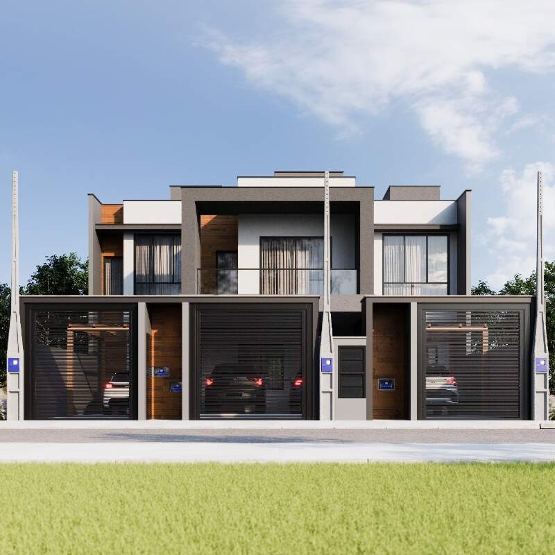As unidades 01 e 03 apresentam excelente padrão de acabamento, com gesso rebaixado em todos os ambientes e iluminação em LED, massa corrida, portas laqueadas brancas, porcelanato combinado com piso vinílico, living integrado e área gourmet com churrasqueira. O imóvel ainda oferece portão automatizado Roll-on, entrada social, paisagismo e infraestrutura para água quente.