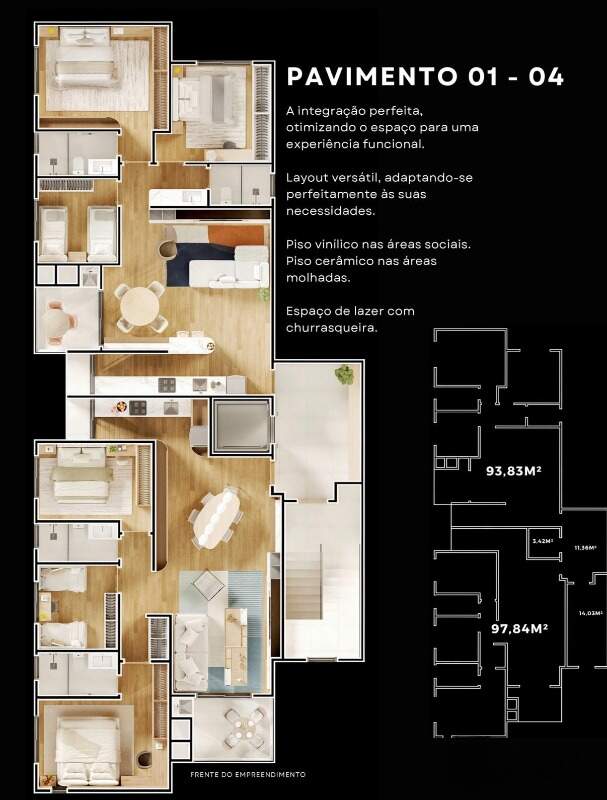 Contém elevador e apenas 2 unidades por andar, o que agrega privacidade.